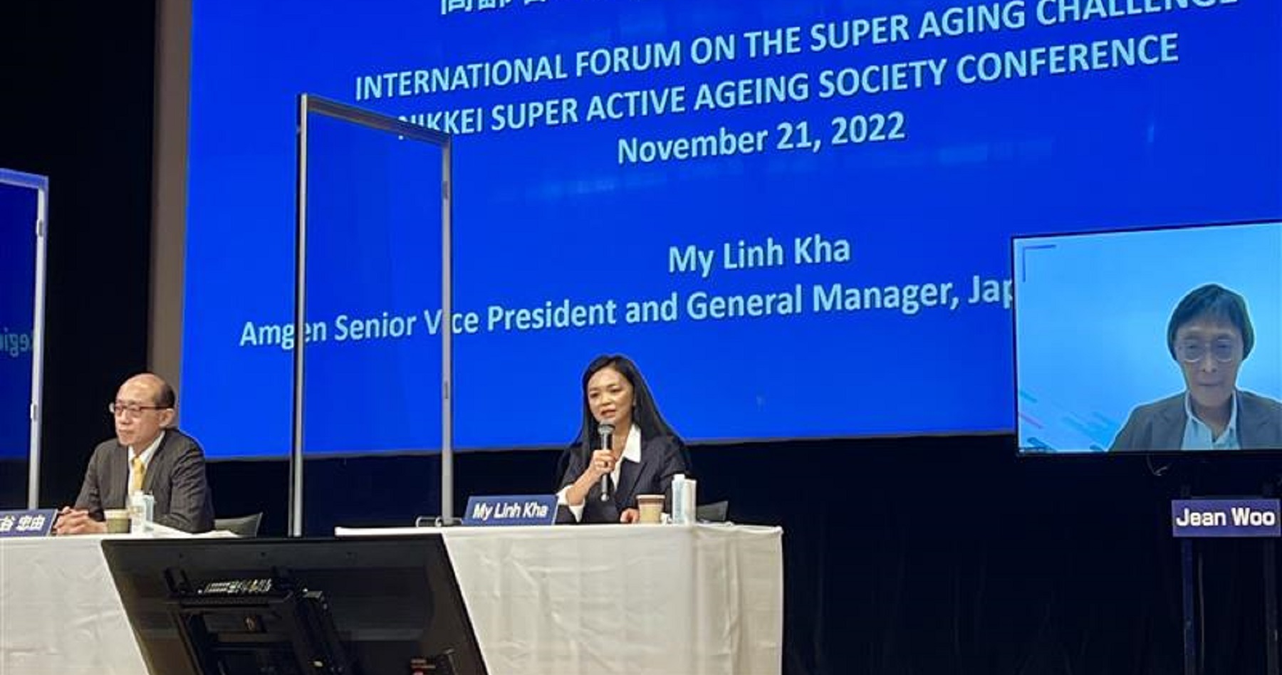11月に東京で開催された「超高齢社会の課題を解決する国際会議」(日本経済新聞社、経済産業省共催)のパネルディスカッションで、米アムジェン社シニア・バイスプレジデント兼太平洋地域ゼネラルマネージャーのメイ・リン・カーは、「ヘルシー・エイジングとは、尊厳と健康を伴う長寿を意味する」と語りました。
